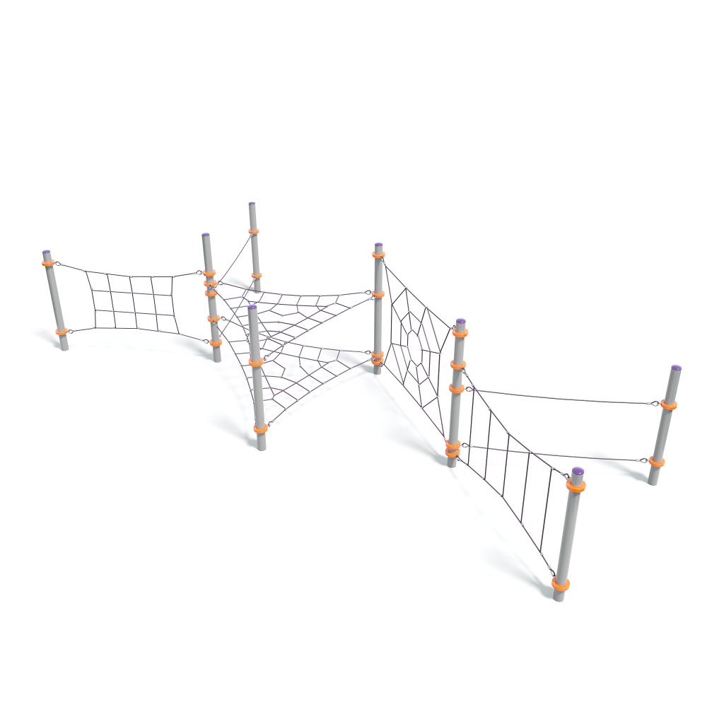 Rope Web Tangle is an exhilarating playground structure that transforms any play area into a web of adventure. Featuring a complex network of ropes arranged in a tangled web, it invites children to climb, swing, and navigate through its intricate design. This dynamic equipment promotes physical strength, coordination, and imaginative play, encouraging kids to weave their way through a thrilling spider’s web of fun and exploration.