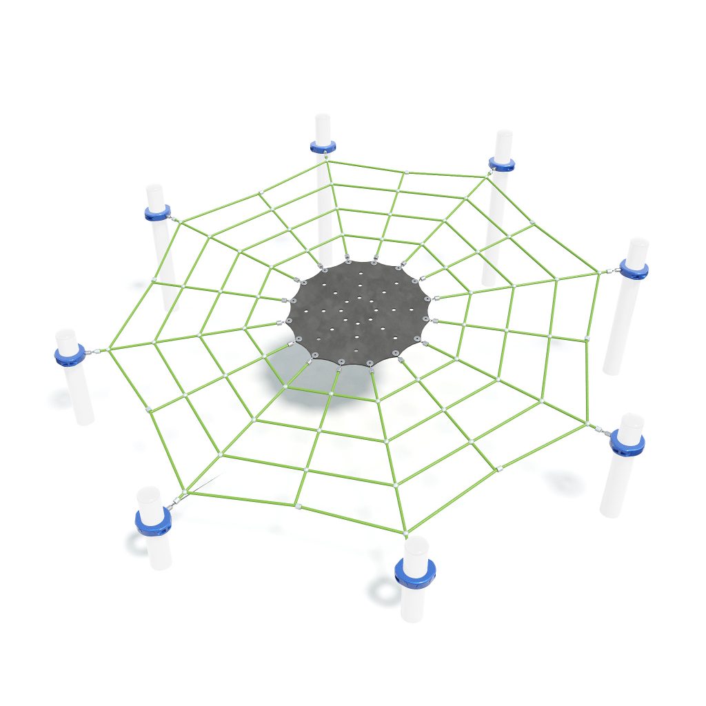 Spidergon with Membrane combines climbing challenges with a tactile surface. It encourages imaginative play and physical exploration in a large, interactive playground feature.