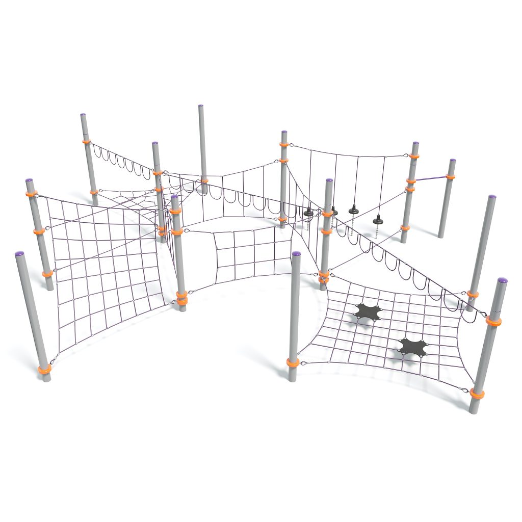 Climb and Twine Course is an adventurous playground structure that transforms any play area into a thrilling obstacle course. Featuring multiple sections of durable rope netting, it invites children to climb, navigate, and explore. This dynamic equipment promotes physical strength, coordination, and imaginative play, encouraging kids to weave their way through a challenging and exciting course that sparks their sense of adventure.