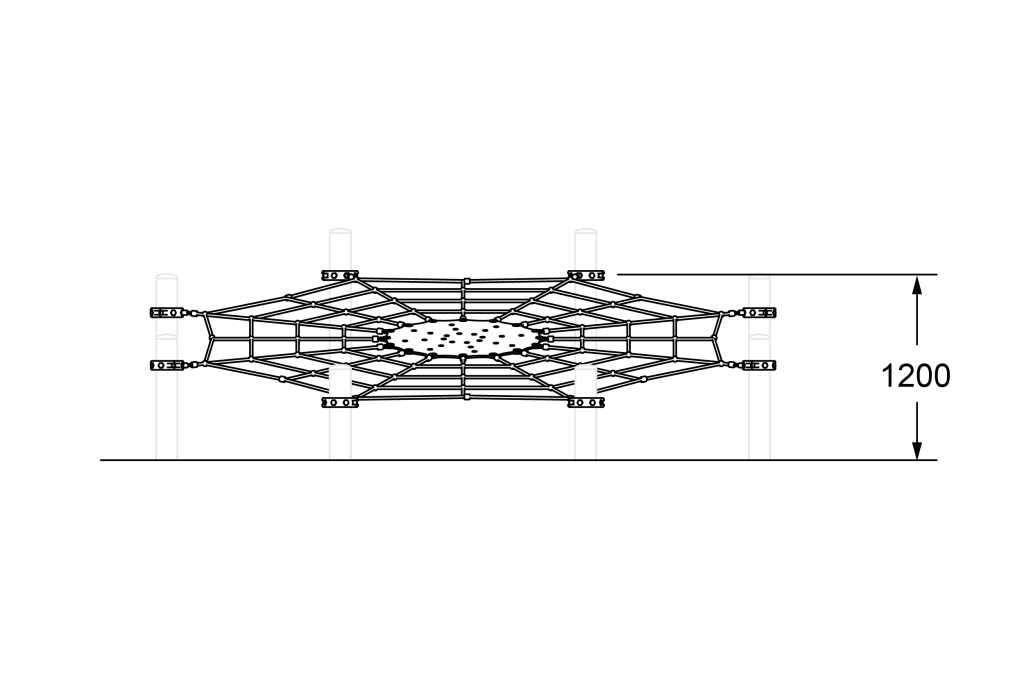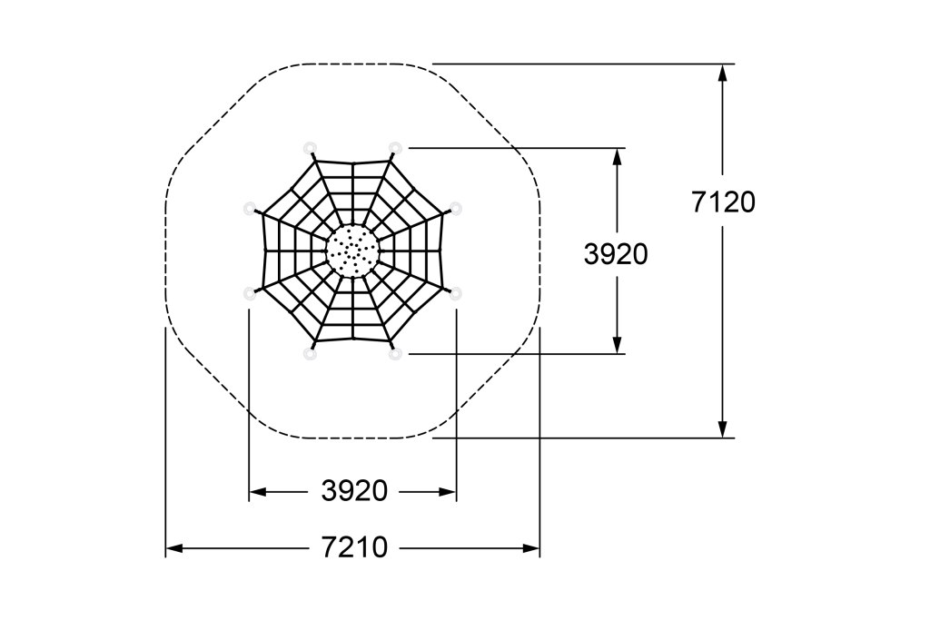 Spidergon with Membrane combines climbing challenges with a tactile surface. It encourages imaginative play and physical exploration in a large, interactive playground feature.