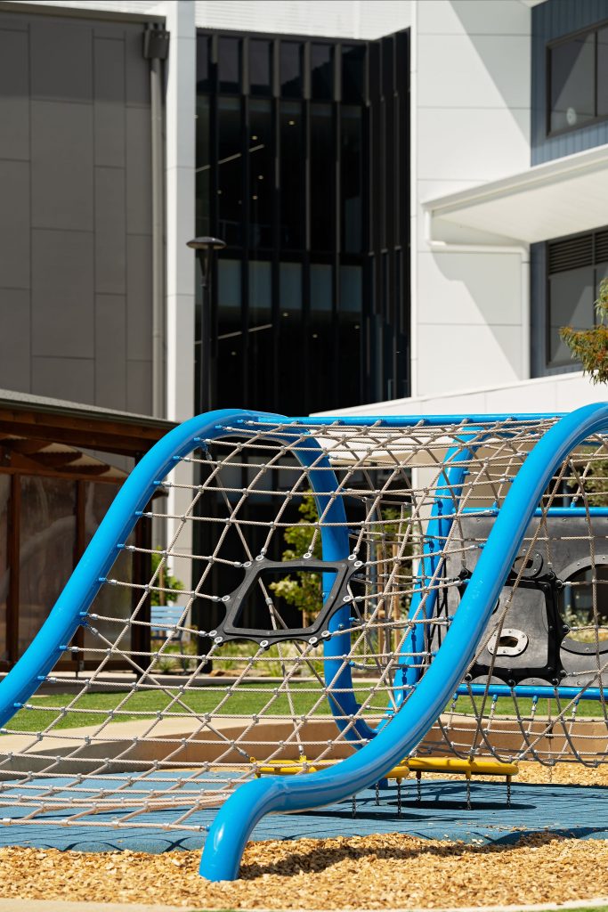 Adding a splash of colour and a dash of adventure, Kaebel Leisure‘s iconic Spaghetti Structures take centre stage in the playscape. Three distinct structures, each boasting its own unique design and play value, weave a vibrant tapestry of climbing, crawling, and balancing challenges: